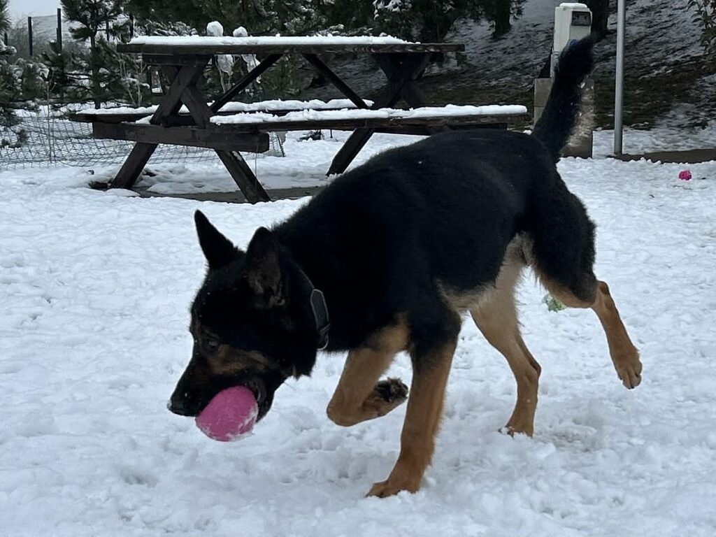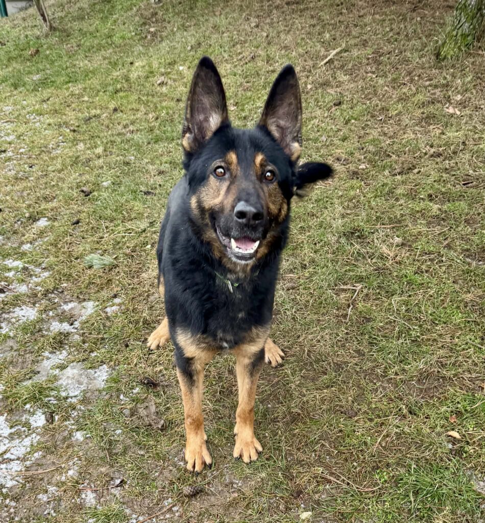 Rex je křížene, narozen 15.2.2023, měří 58 cm a váží 23,5 kg. Přijatý 26.1.2026, odebrán z nevhodných poměrů. Byl celé dny zavřený v malém kotci, plném výkalů. Živený je celkem dobře a fyzicky týraný také nebyl. Je to mladý pes, aktivní a dychtící po tréninku. V kotci je klidný, nic neničí. Chůzi na vodítku je potřeba doučit. Miluje balonky, aportuje je a výměnou za jiný vrací. Balonky a pamlsky jsou pro něj velkou motivací k výcviku. Ostatních psů v kotcích si nevšímá, ale v přímém kontaktu s nimi nebyl. Občas má tendenci ke skákání, ale dá si říct. Super adept na výcvik. Rex by byl úžasným adeptem na canicross. Běží krásně a nic neřeší – ani dopravu, ani psy venku nebo za ploty.